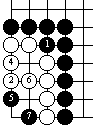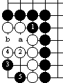 白2不好。注意,黑不做黑a、白b的交换,这里黑要多出一个劫材。这就是白2不好的原因。有时候一个劫材会决定一局棋的胜负。