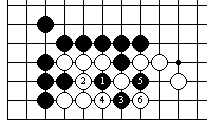黑1,白2以后,黑3是关键的好手。以下白只能通过打劫来抵抗了。