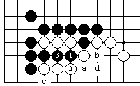 也许白2只能让黑吃掉3子了。以后黑a、白b、黑c、白d是黑的权利。